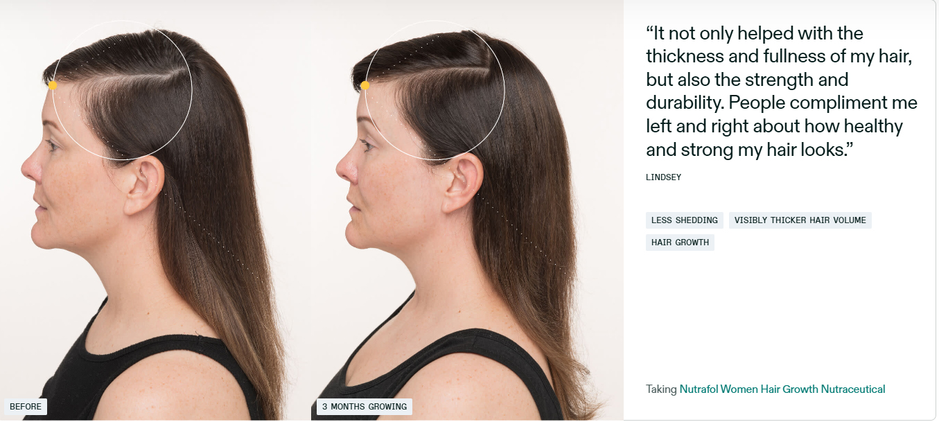 This award-winning Nutrafol supplement helps hair grow faster, thicker, fuller, and stronger.